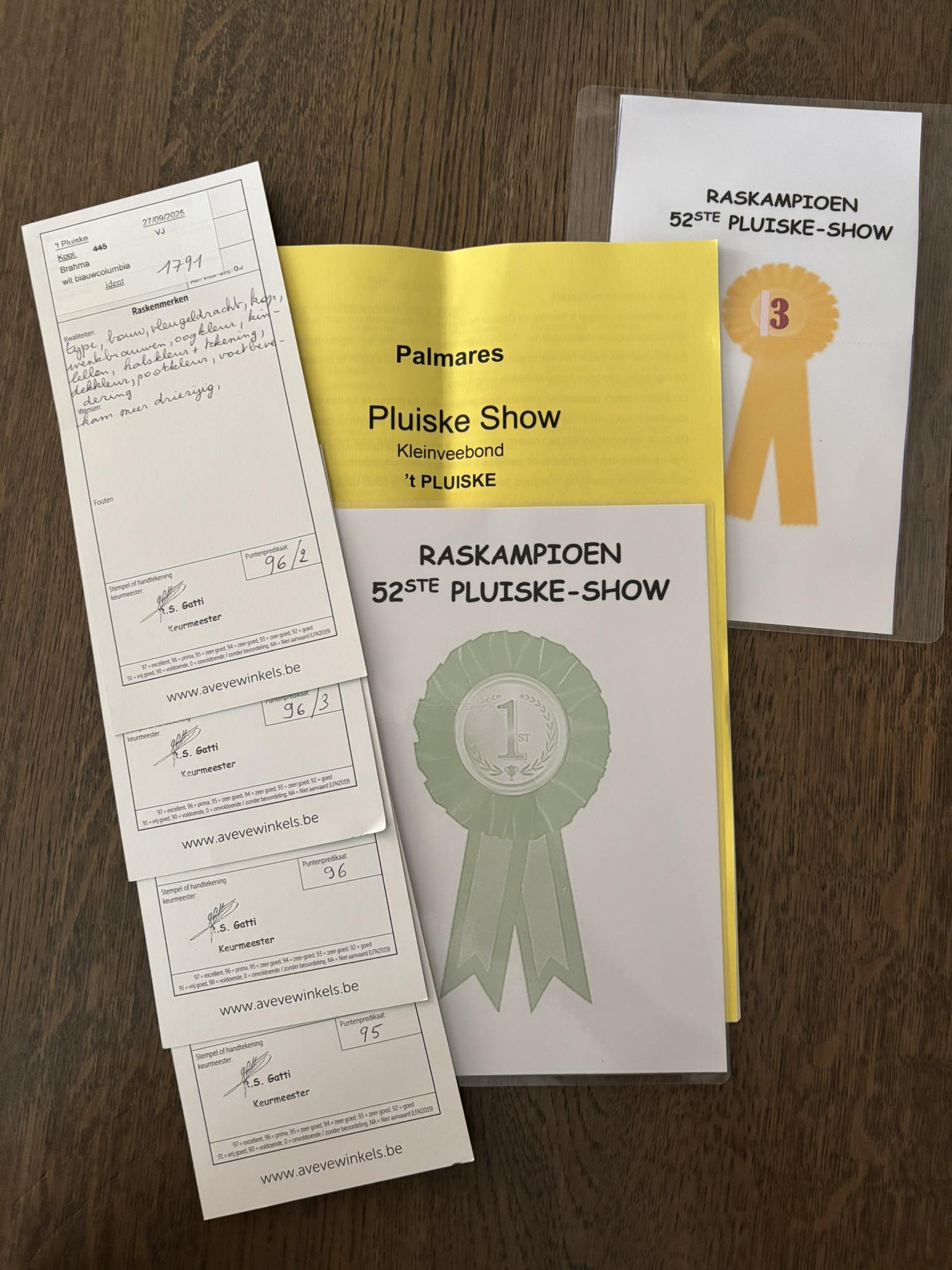 Bij de grote Brahma’s: 2e en 3e plaats van alle aanwezige grote Brahma’s. Dank aan de organisatoren en keurmeesters voor de goed georganiseerde tentoonstelling.